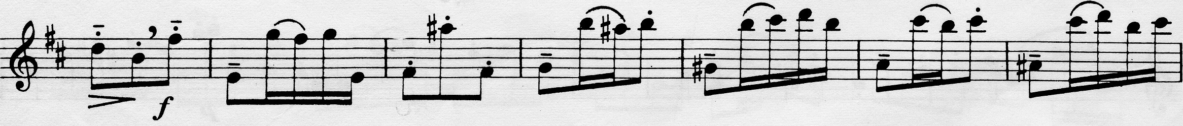 In last weeks post about assessment with MusicXML we used an example with lots of articulations. Let us have a look again: