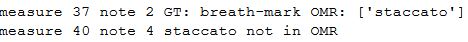 What means ‘partially correct’? It means that the OMR recognized a type of articulation/ornament, but the ground truth expected something else. For example, where a ‘staccato’ was recognized by the OMR, but the ground truth contained a ‘staccatissimo’. That persuaded me to count the mere detection of an articulation as ‘partially correct’. Lately, I seem to see more case of a ‘tenuto’ instead of a ‘staccato’, and no, I do not think that this is partially correct. I’ll wait for more results!